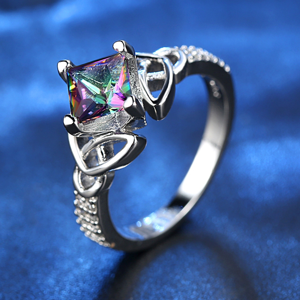 Colorful Stone Square Diamond Ring - Creative Jewelry