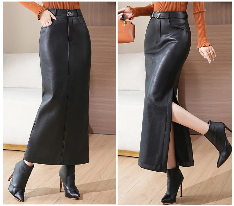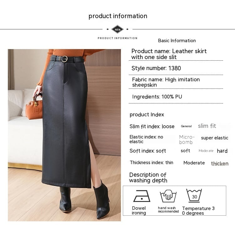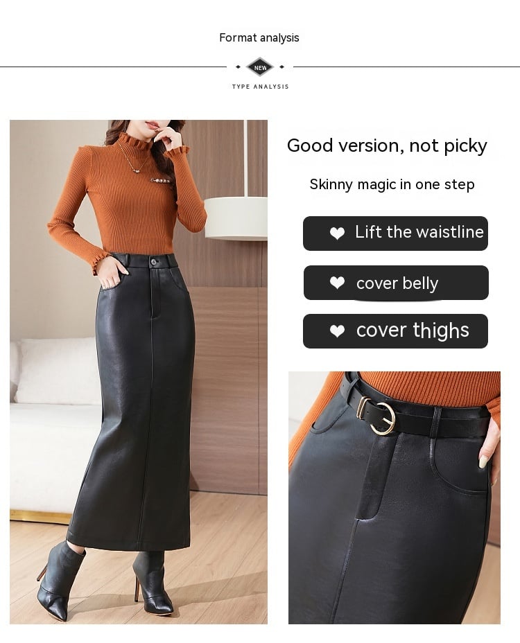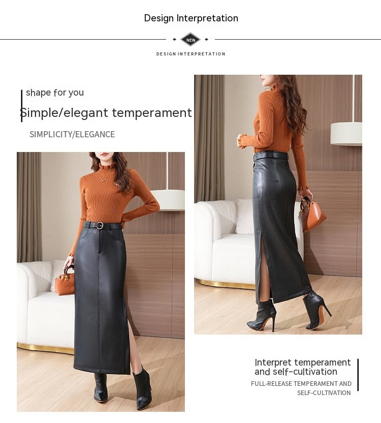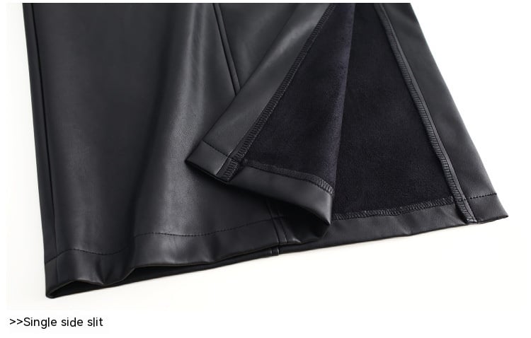 Don't miss out on this essential addition to your wardrobe. Shop now and embrace the elegance of the Autumn and Winter Fleece-lined Thickened Side Slit PU Leather Hip Skirt!