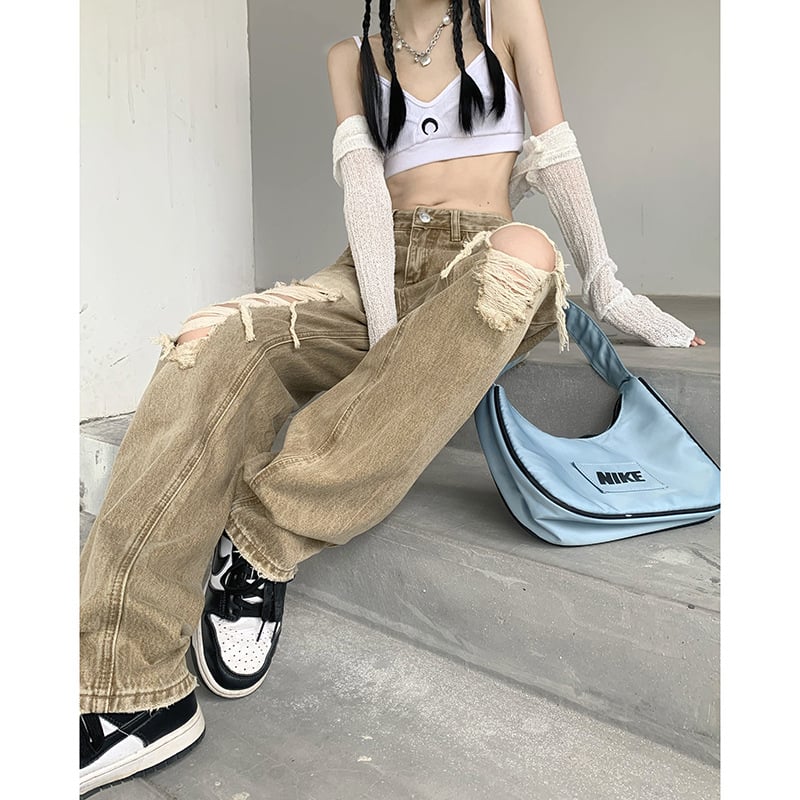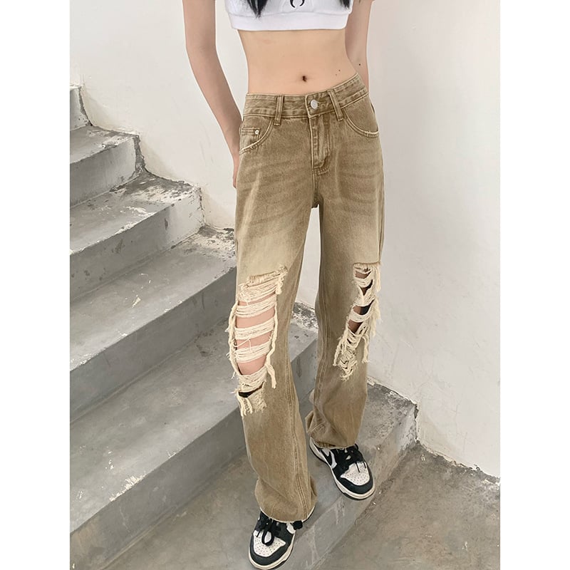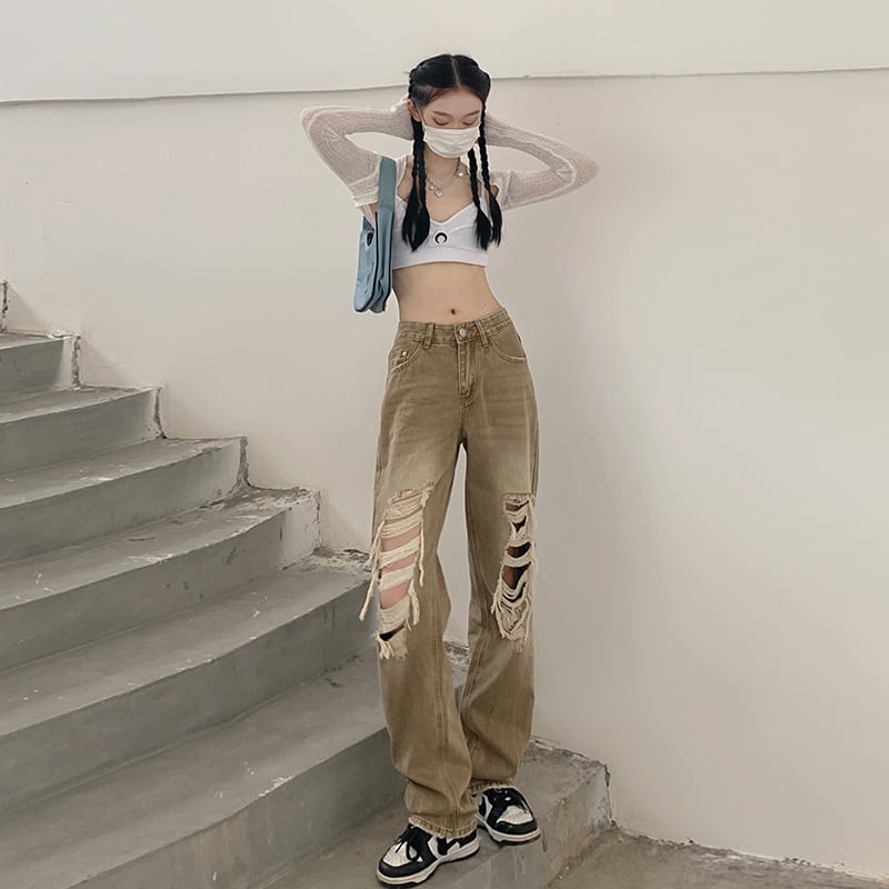 Step out in style with our High Waist High Street Denim Retro Casual Straight Trousers!