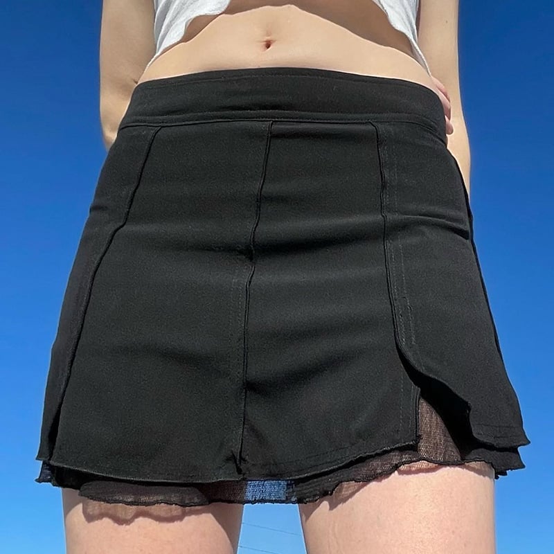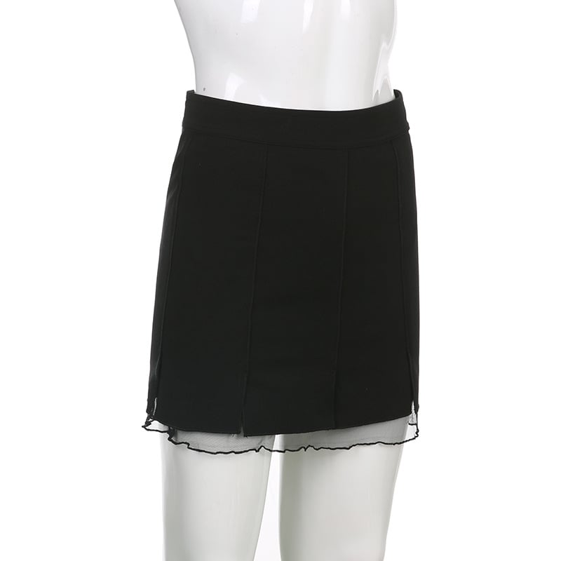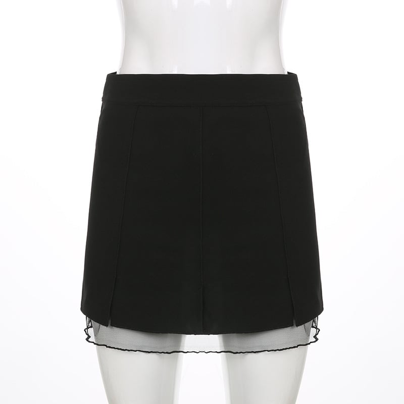 Low Waist Double Elastic Slit Mesh Skirt for Women