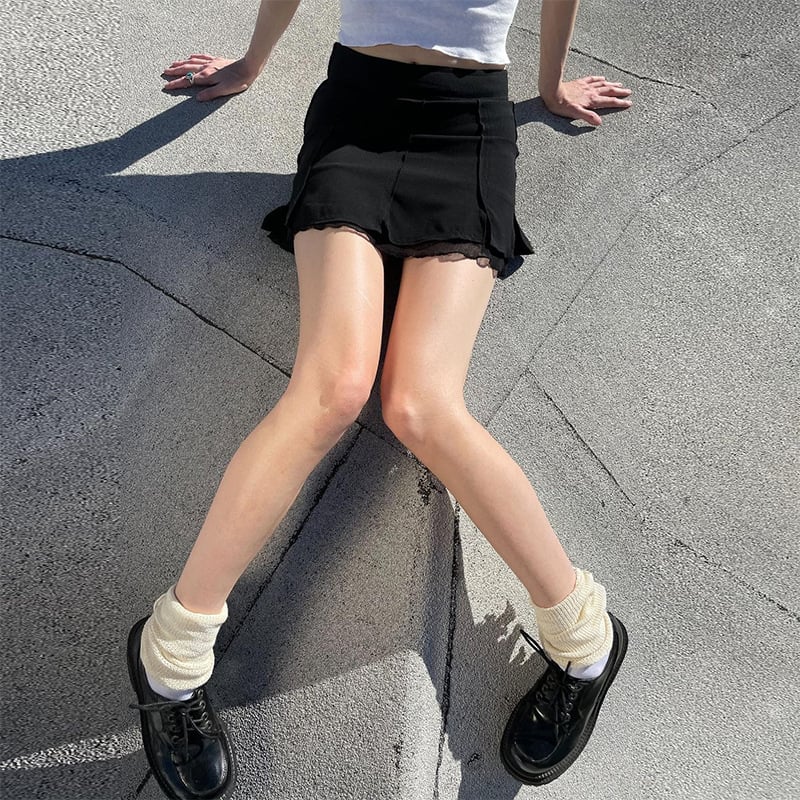Don’t miss out on this fashion staple that beautifully merges elegance and comfort. Elevate your wardrobe with the Low Waist Slit Stitching Mesh Gauze Double Elastic Skirt today!