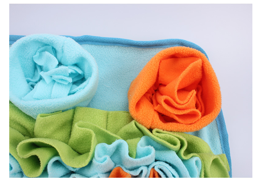 Crafted from high-quality canvas and fleece, this pad is not only durable but also gentle on your pet's paws. The non-slip bottom ensures that the pad stays securely in place, allowing your dog to explore and play without any interruptions. Measuring at a generous 50 x 45 cm, it provides ample space for your dog to sniff out treats and toys hidden within its colorful macaron design.