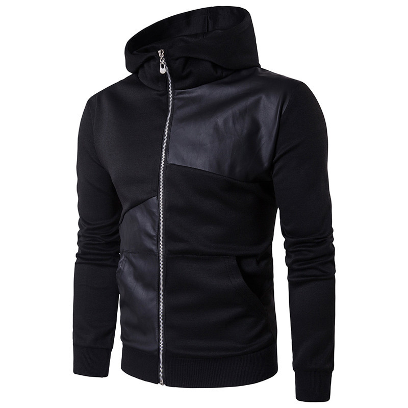 Introducing the ultimate combination of style and comfort with our 2018 Men's Spring and Autumn Hoodie. This versatile black hooded jacket features a unique leather patch design, making it perfect for any casual occasion. Whether you're out for a stroll or meeting friends, this hoodie adds a touch of sophistication to your outfit.