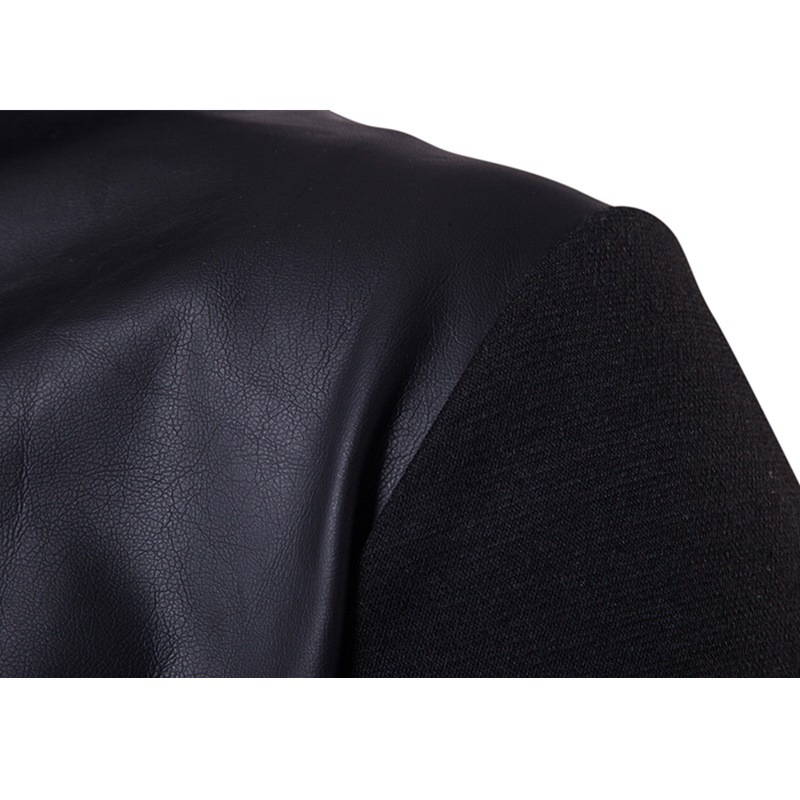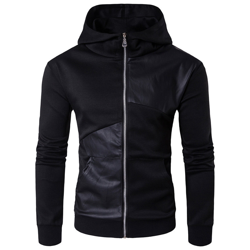 Men's Spring Autumn Hooded Jacket with Faux Leather