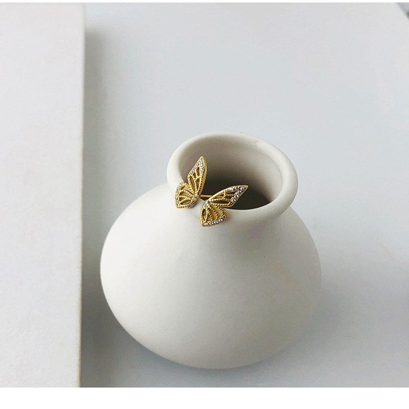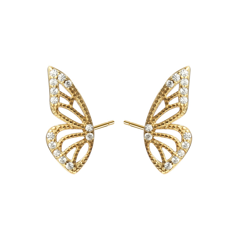 S925 Silver Butterfly Wing Earrings with Diamonds