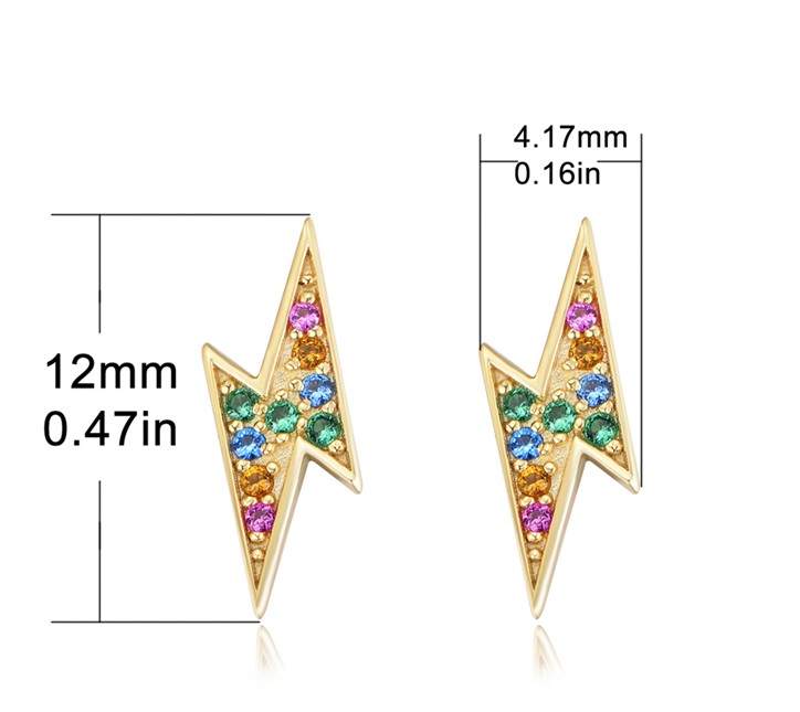 S925 Silver Colorful Zircon Lightning Stud Earrings