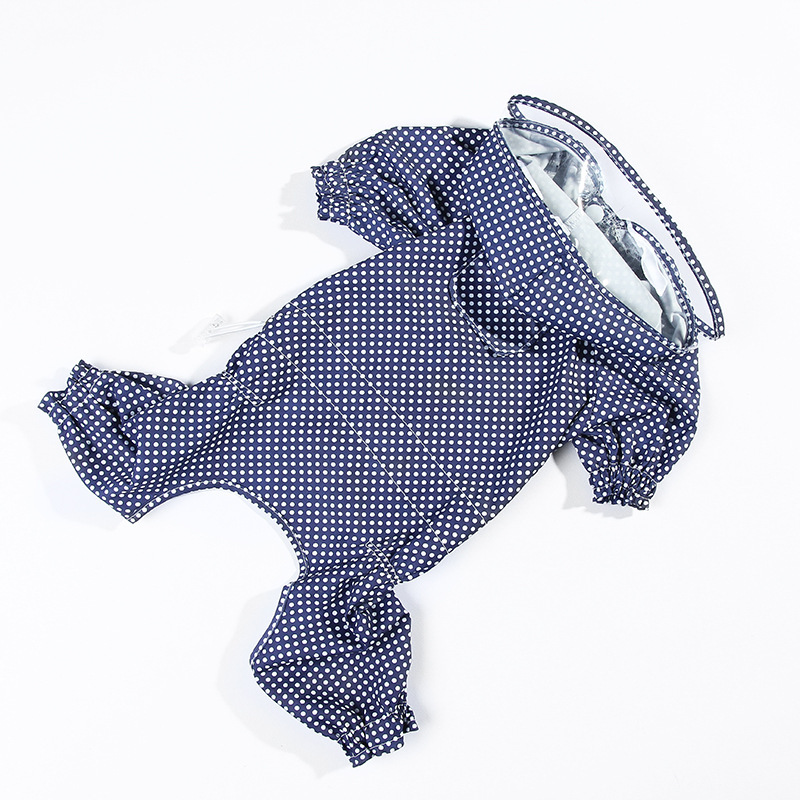 Available in three fashionable colors: Blue dots, Apricot dots, and Pink dots, you can choose the perfect style that suits your pet's personality. Whether it's a casual stroll in the park or a hike in the woods, these raincoats provide both protection and style.
